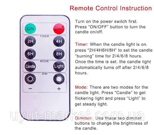 Свічка з імітацією полум'я має дуже реалістичний вигляд, з боків виступають краплі воску. Вживу в ввімкненому стані має просто приголомшливий, таємничий мерехтіння заповнить Ваш простір справжньою магією світла та романтики.