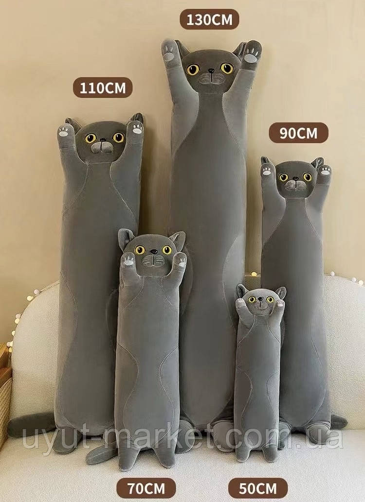 М'яка іграшка кіт британець сосиска 50см - великий плюшевий кіт для дітей та дорослих. Великий м'який кіт британець-сосиска довжиною 50см - це іграшка, яку люблять і діти, і дорослі. Такий кіт ідеально підходить для обіймашок, ігор і навіть як подушка-антистрес.